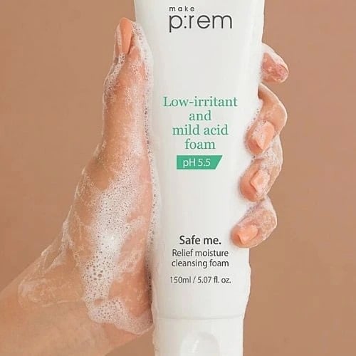 – Make P:rem Safe Me Relief Moisture Cleansing Foam là sữa rửa mặt có độ pH 5.5 lý tưởng cho làn da khỏe mạnh có khả năng cân bằng độ pH trên da, tạo một lớp màng dưỡng ẩm, duy trì độ ẩm khiến da luôn ẩm mịn